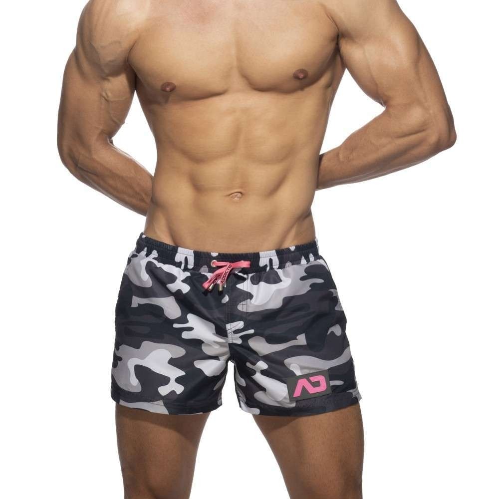 Swim Short 100% polyester Fast dry fabric Cut low and square Camouflage printed all over Silicone AD logo on the front Back pocket U-Shape technology, highly comfortable Designed & made in Barcelona