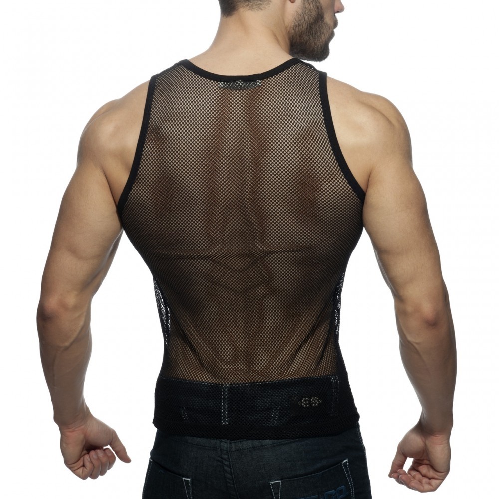 Tank topΔιαφανές πλέγμα σε μονόχρωμο χρώμαΛογότυπο σιλικόνηςAD μπροστά αριστεράΕλαστικό υλικό για καλύτερη εφαρμογή85% Πολυεστέρας 15% SpandexΣχεδιασμένο και κατασκευασμένο στη Βαρκελώνη