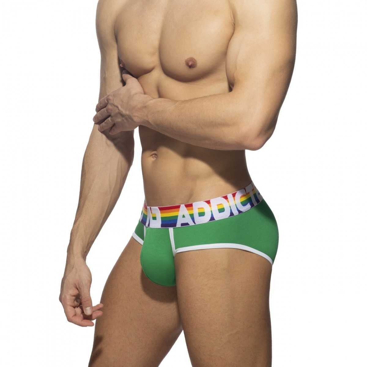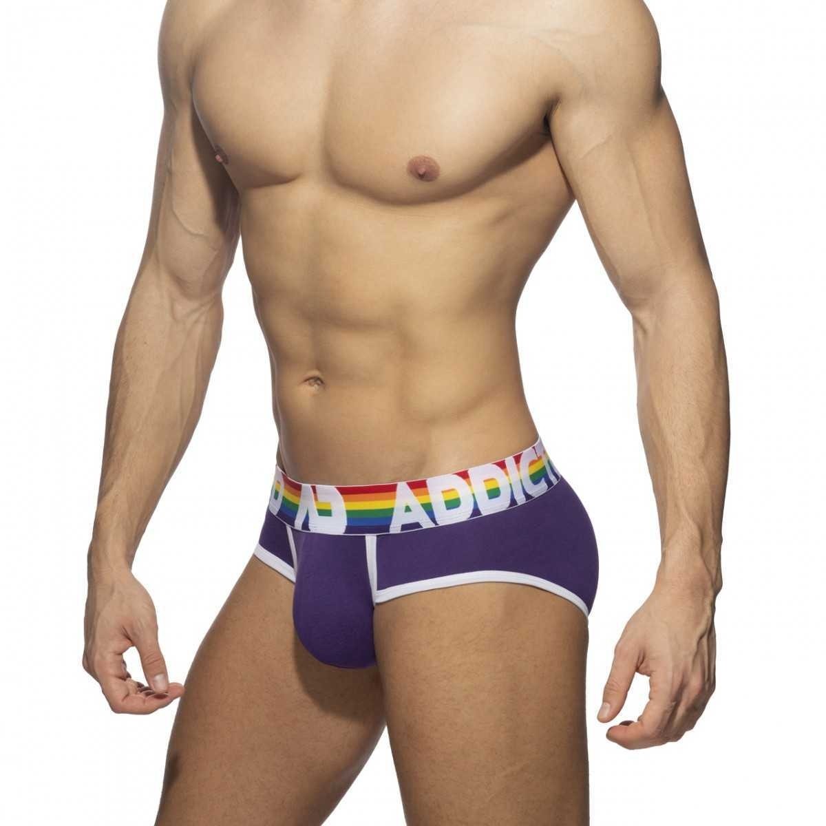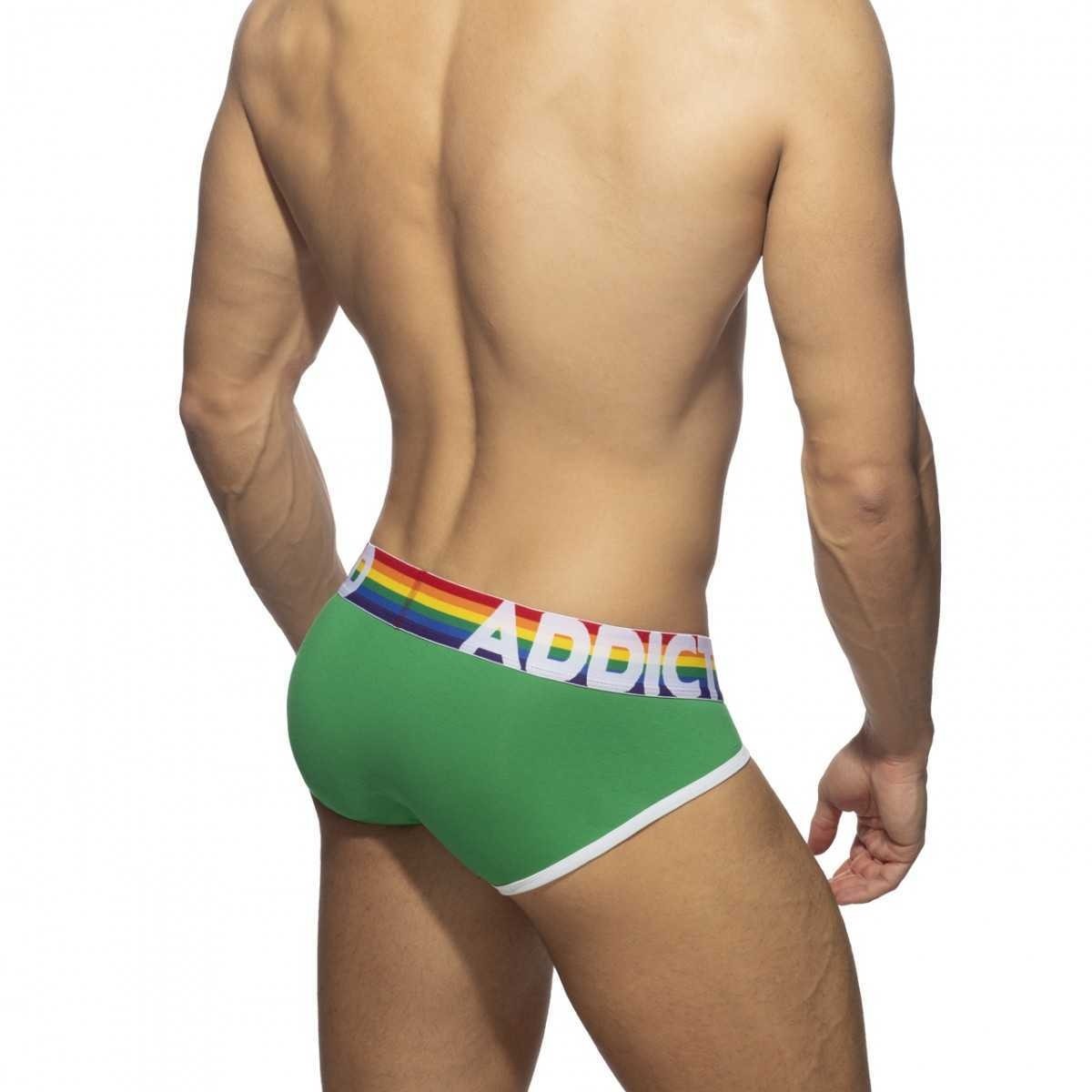 Εξαιρετικά 6 BRIEFS (VALUE PACK) κατασκευασμένα από λεπτό βαμβακερό ύφασμα. Σύνθεση: 95 otton - 5lastane. 6 σλιπ σε όλα τα χρώματα του ουράνιου τόξου (κόκκινο, πορτοκαλί, κίτρινο, πράσινο, μπλε, μοβ). Ουράνιο τόξο στη μέση από ζακάρ με αντίθεση AD ADDICTED. Κορδέλες με αντίθεση σε λευκό χρώμα. Μεγάλη χωρητικότητα θήκης