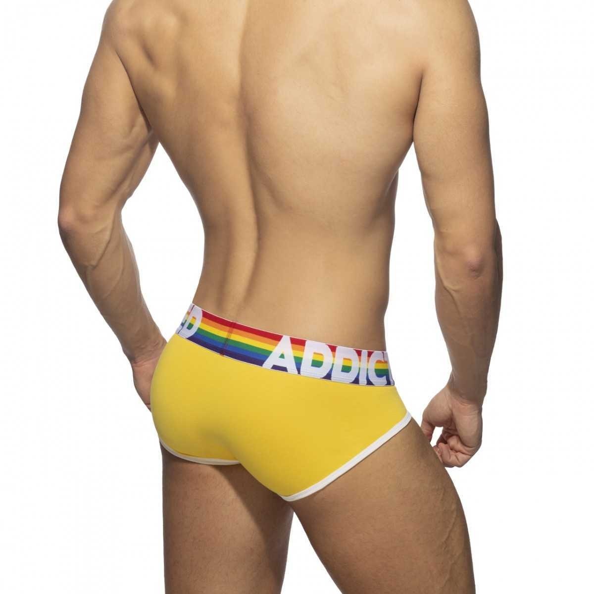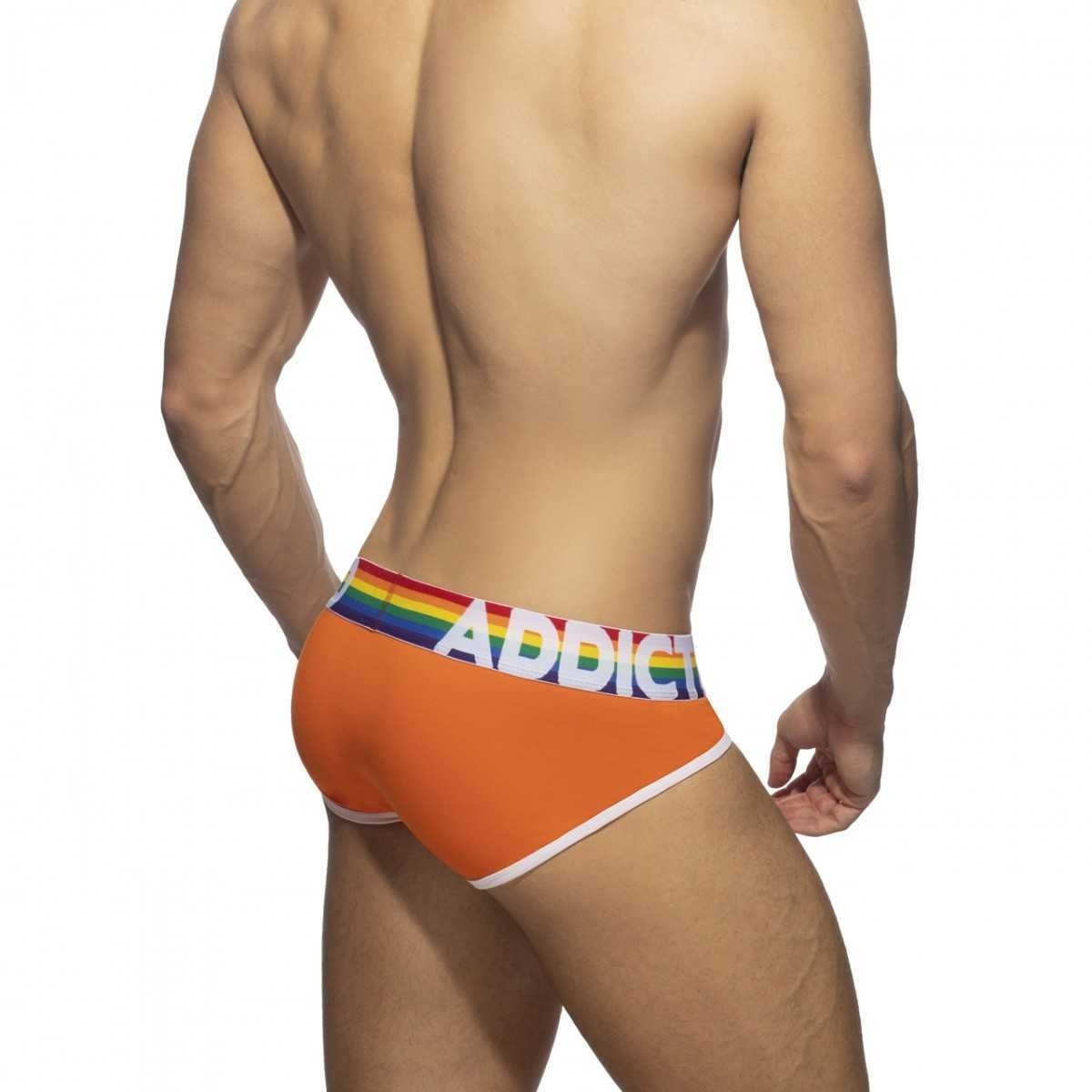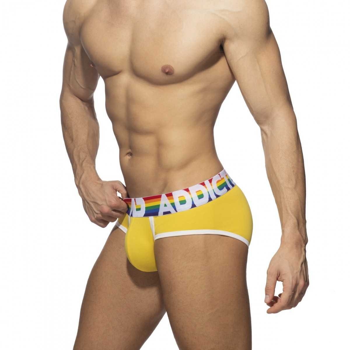 Εξαιρετικά 6 BRIEFS (VALUE PACK) κατασκευασμένα από λεπτό βαμβακερό ύφασμα. Σύνθεση: 95 otton - 5lastane. 6 σλιπ σε όλα τα χρώματα του ουράνιου τόξου (κόκκινο, πορτοκαλί, κίτρινο, πράσινο, μπλε, μοβ). Ουράνιο τόξο στη μέση από ζακάρ με αντίθεση AD ADDICTED. Κορδέλες με αντίθεση σε λευκό χρώμα. Μεγάλη χωρητικότητα θήκης