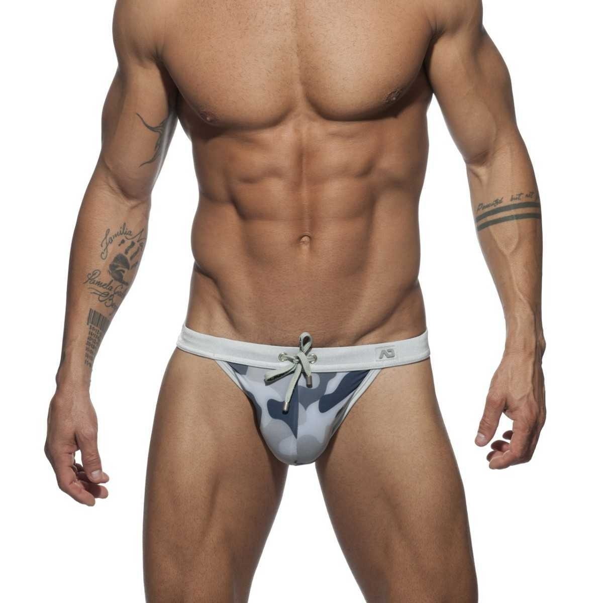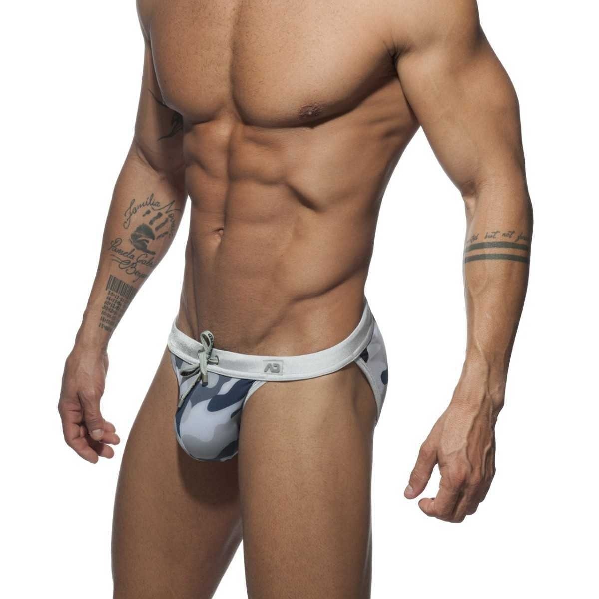 Swimming bikini brief σε καμουφλάζ *χωρίς Pack-Up* 80% πολυαμίδιο και 20% ελαστάν Κορδόνια για καλύτερη άνεση Πολύ λεπτό ύφασμα που μοιάζει με δεύτερο δέρμα Λογότυπο AD σε σιλικόνη στο μπροστινό μέρος Αντίθετες γραμμές και ζώνη μέσης σε ασημί χρώμα Σχεδιασμένο και κατασκευασμένο στη Βαρκελώνη