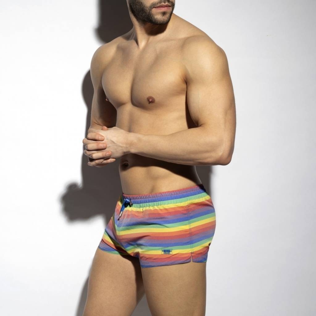 Όμορφο και αστείο μαγιό σορτς από το καλύτερο πολυαμιδικό ύφασμα tactel. Ύφασμα ζακάρ με πολλές ρίγες πολύ μαλακό και στεγνώνει γρήγορα. Περιλαμβάνεται η τεχνολογία U-Shape. Χάρη σε αυτό το εσωτερικό σλιπ το φούσκωμα σας θα έχει την καλύτερη στήριξη και όλα θα είναι στη θέση τους. Μικρή τσέπη στο πίσω μέρος. Λογότυπο σιλικόνης ES Collection στο αριστερό πόδι. Μπροστινά κορδόνια για καλύτερη προσαρμογή